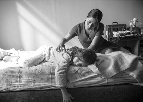 No estoy de acuerdo. Lo que pasa es que Cuarón –un tipo que ha creado el mundo fantástico de Harry Potter, la distopía futurística de Hijos del hombre y una ciencia ficción como Gravity- ha decidido acercarse al universo de Cleo (quizá tan distante y desconocido como aquellos) desde la estrategia del detalle absoluto, casi hipnótico, de la fotografía en blanco y negro, de planos amplios llenos de elementos y gestos reveladores. Hay que buscar la complejidad de Cleo en aquellas escenas donde su equilibrio (incluso el literal) la distingue del resto. Durante un temblor en lugar de rezar o buscar refugio como el resto, permanece tranquila y concentrada. Cuando contesta el teléfono lo limpia antes de pasarlo a Sofía, pero la noche, en lengua mixteca critica y se ríe de la tacañería de la jefa. Acepta sin chistar su embarazo no deseado, pero su maternidad tiene dolorosas contradicciones. Le gusta apasionadamente el cine.