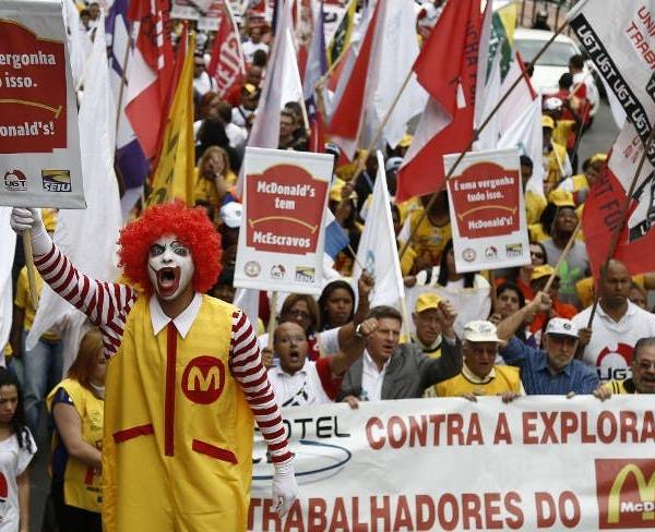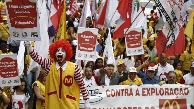 1.300 empleados de la multinacional estadounidense de comida rápida McDonald's se movilizaron el martes en la céntrica Avenida Paulista, en Sao Paulo, para reclamar