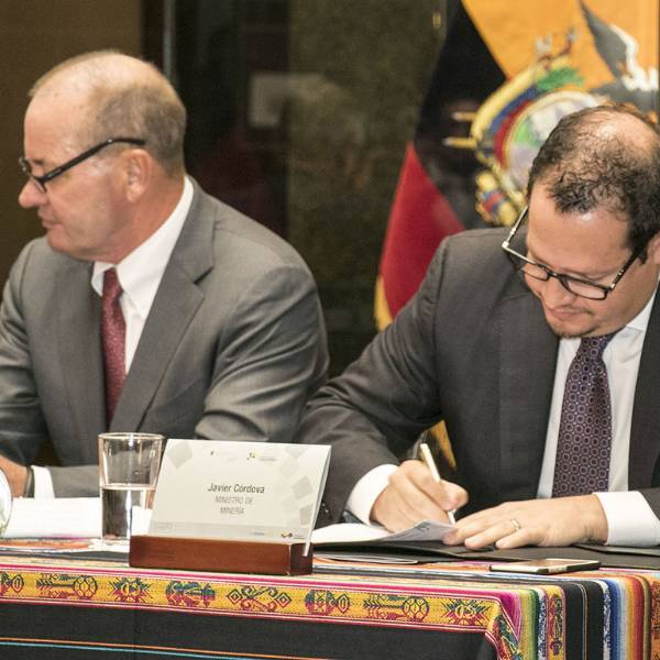 El acuerdo, suscrito por el ministro ecuatoriano de Minería, Javier Córdova, y el presidente de Lundin Gold, Ron Hochstein, prevé que la canadiense pagará 65 millones de dólares en regalías anticipadas (25 millones al firmar el contrato y el resto en dos cuotas iguales en los próximos dos años).