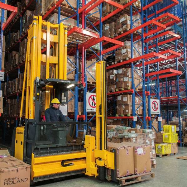 Algunas de estas estaciones son alimentadas por equipos trilaterales que permiten retirar la mercadería de las perchas de forma ágil y segura. “Sacamos los productos en un ángulo de 180 grados; la máquina puede llegar hasta los 12 metros de altura”, señala Kleic. GPF invirtió más de 300 mil dólares en la compra de esos dos equipos.