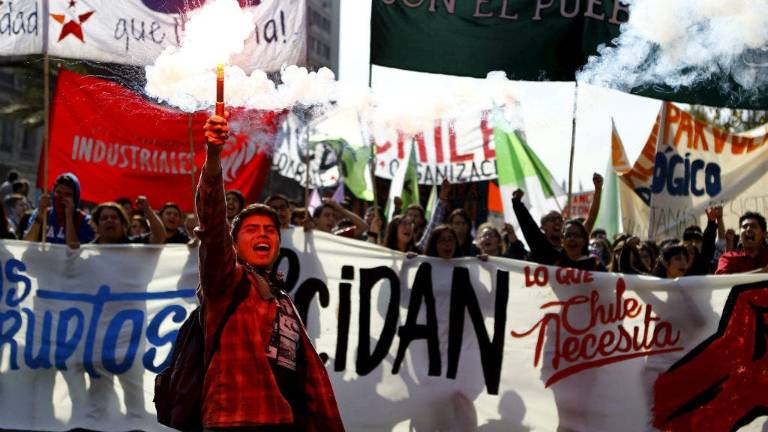 La manifestación tuvo el lema "Que Chile decida su educación" y sirvió también para que los jóvenes expresaran su indignación por los casos de corrupción que se han destapado en el último tiempo y que involucran a políticos y empresarios.