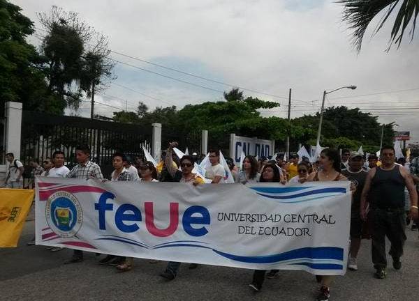 hace extensivo su rechazo a la intención de refundar la organización, y asegura que la política está detrás: “La marcha fue convocada dentro de la Universidad Guayaquil por las autoridades”.