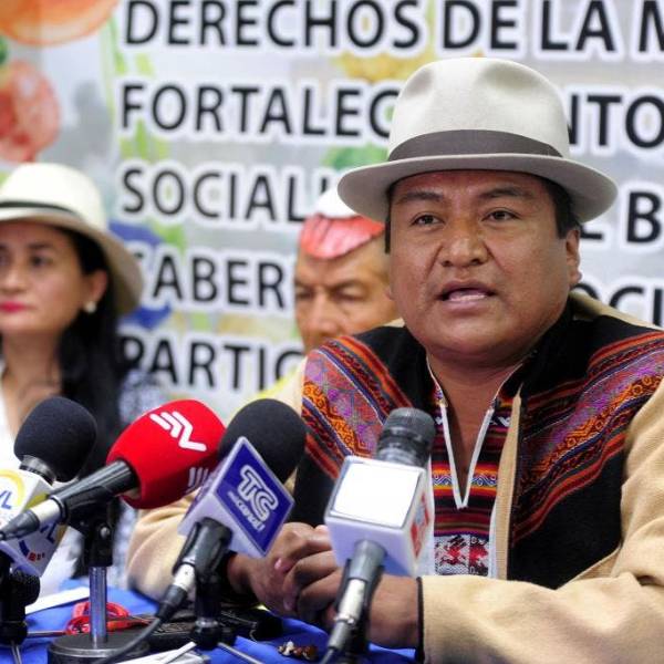 "Al compañero Pedro De la Cruz a la reelección del Parlamento Andino, también se propone a Franklin Columba a la Asamblea Nacional", dijo Santos Villamar, integrante de la minga de los pueblos.