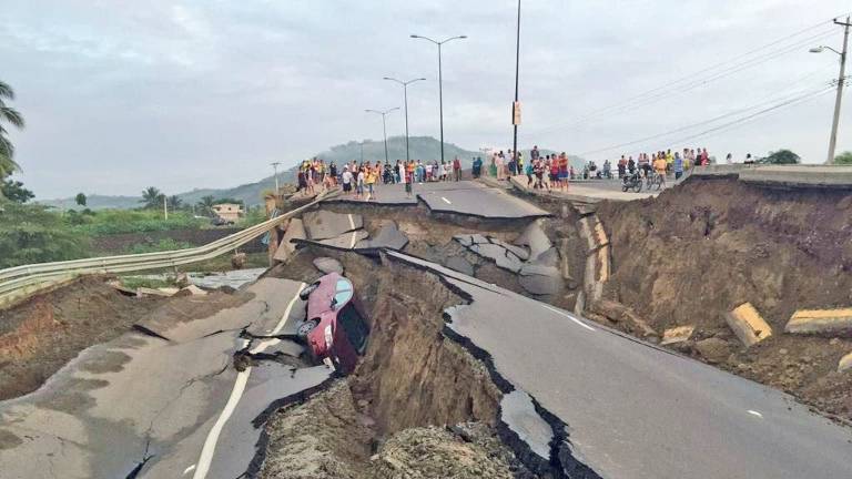 Por ejemplo, en vías de Tosagua y Chone se ha registrado uno que los geólogos conocen con el nombre de “sinkhole”, grietas circulares que revelan agua subterránea y arcilla.
