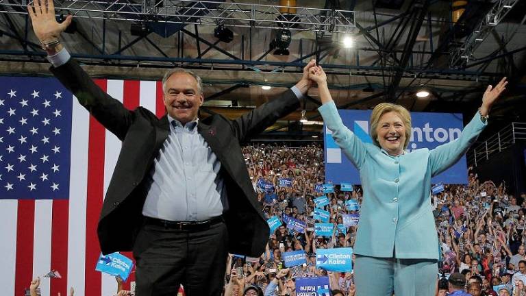 Miami.- La aspirante demócrata a la Casa Blanca, Hillary Clinton, compareció este sábado 23 de julio en público junto al senador Tim Kaine por primera vez desde que anunció que será él su compañero de fórmula en las elecciones presidenciales de noviembre.