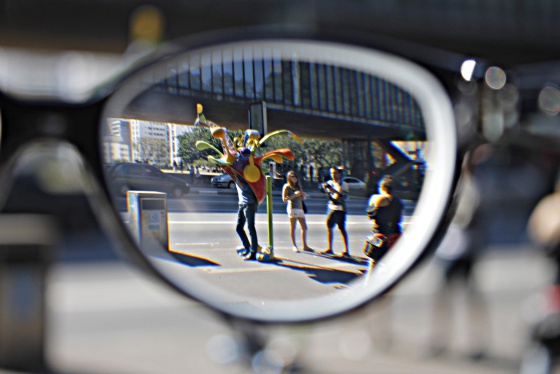 En estas imágenes, todo lo que está dentro de la luna es nítido y todo lo que queda afuera luce desenfocado. “Quería que las personas vieran cómo veo el mundo. Yo tengo un nivel de miopía bastante alto y quería que me entendieran. La mezcla de colores y las extrañas formas que los miopes perciben cuando no usan lentes son muy interesantes y hasta cierto punto divertidas”.