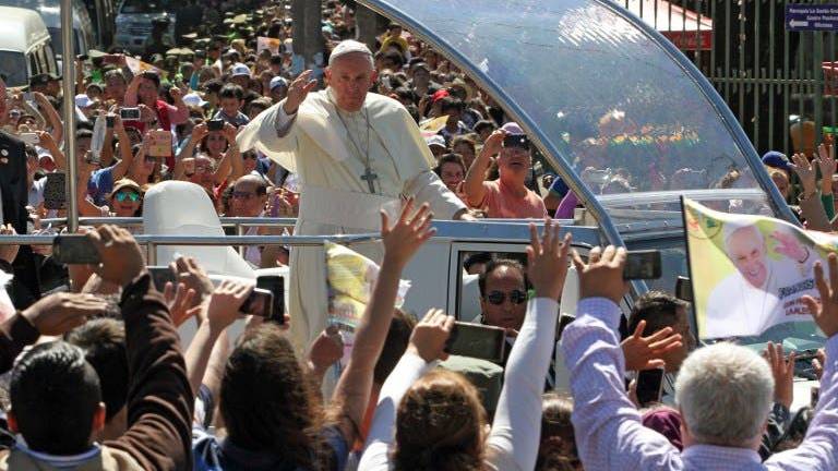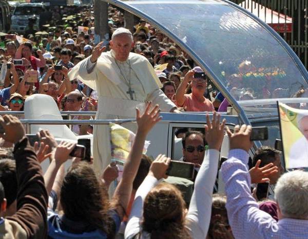 Francisco llegó al aeropuerto en el papamóvil, tras recorrer las calles llenas de decenas de miles de personas que le volvieron a aplaudir y le vitorearon para despedirlo.