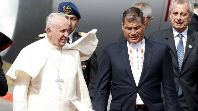 El papa Francisco llegó la tarde de este domingo a Quito para iniciar una gira que lo también lo llevará a Bolivia y Paraguay.