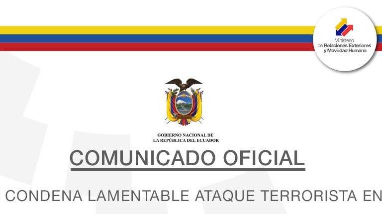 El Gobierno ecuatoriano rechazó hoy los actos violentos indiscriminados contra la población civil y se solidarizó con Colombia tras el atentado ocurrido ayer en un centro comercial, en el que murieron tres personas.