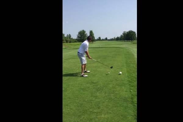 golfista aficionado golpea a un ave con la pelota tras el drive, el primer golpe hacia el hoyo.