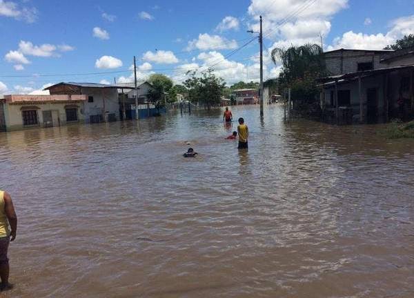 En otros sectores de la comuna, el estancamiento de agua es evidente por la creciente del río Daular. Algunos animales buscan un lugar donde refugiarse, y decenas de moradores tratan de ingresar a sus viviendas, pero el acceso es imposible.