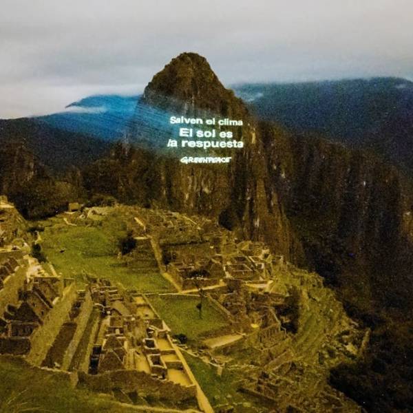 "Por eso desde Machu Picchu, este lugar sagrado en la cultura peruana, Greenpeace exige a los políticos que eviten un desastre climático y avancen hacia un modelo cien por ciento renovable para el año 2050", añadió.