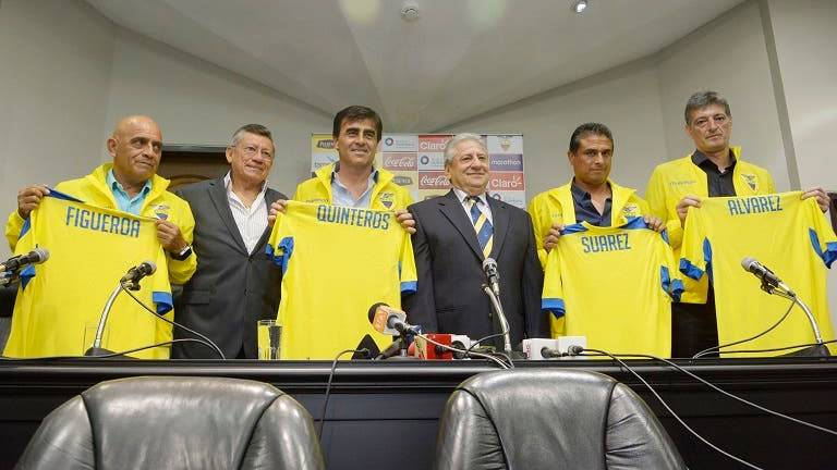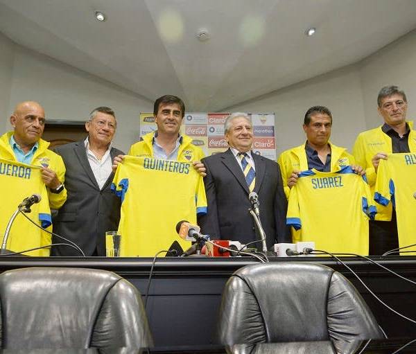 Quinteros contará con la colaboración del mismo cuerpo técnico que lo ha acompañado en Emelec, es decir con Luis Suárez, como asistente técnico, Rodrigo Figueroa, como preparador físico, y Marcelo Álvarez, como preparador de arqueros.