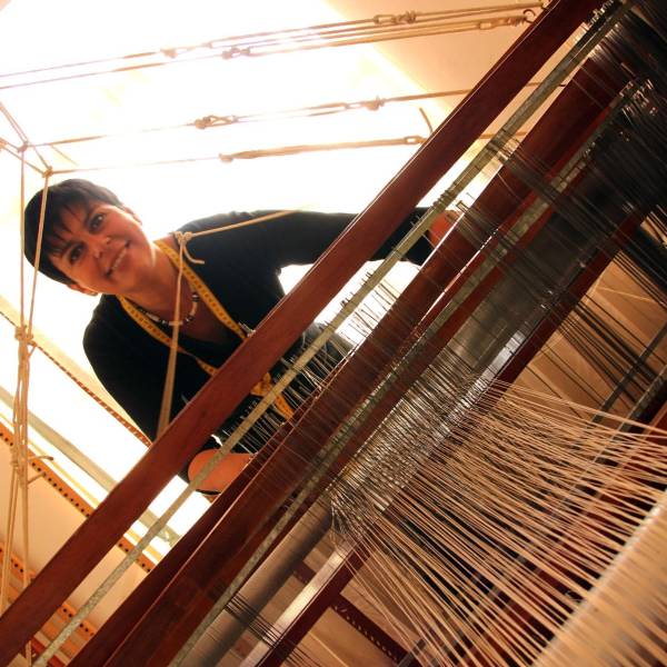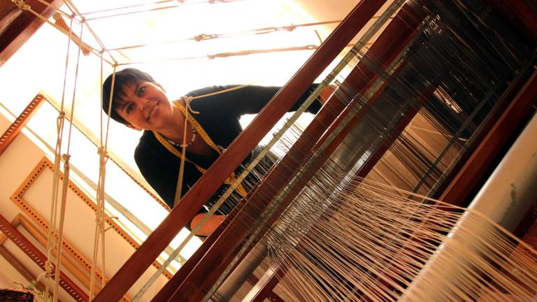 La artista cuencana Mónica Malo Piedra usa telares artesanales para sus creaciones. Ella comparte sus conocimientos sobre las técnicas ancestrales con las comunidades rurales del Austro.