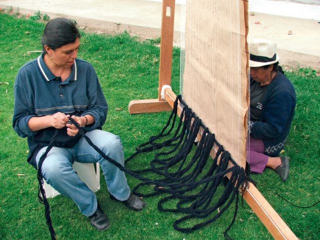 El primer paso lo dio junto a las mujeres de la parroquia Susudel, en el cantón Oña, al sur de la provincia del Azuay. Allí ejecutó hace 15 años el proyecto “Tejedoras de sueños” con integrantes de la Asociación Hatun Cóndor. Ellas continúan confeccionando ponchos, chalinas, tapices y bolsos en su taller situado junto a la iglesia.