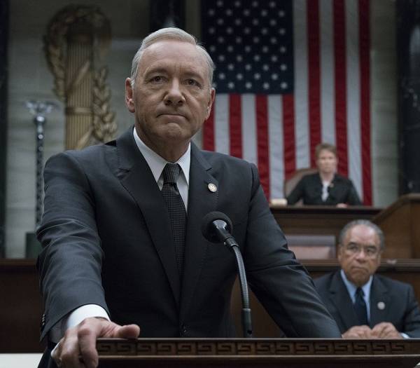 Sin saber que el personaje principal, Frank Underwood, tendría que abandonar el plató, los autores de la serie facilitaron la tarea al final de la quinta temporada al poner a Claire, la esposa del inescrupuloso presidente, a sucederlo.
