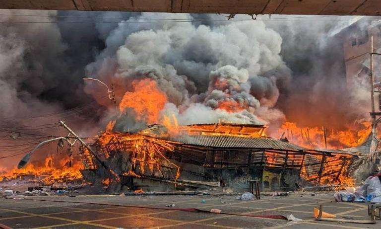 Autoridades aseguran que la rápida propagación de las llamas es debido al uso de madera en la mayoría de las tiendas y lo próximo que está cada local entre sí.