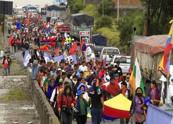 "la declaratoria a nivel de todo el país del gran levantamiento de los pueblos del Ecuador", que se traducirá en manifestaciones en diferentes partes de la nación, si bien dentro del sector indígena existen grupos que apoyan al gobierno y han anunciado que no secundaran las movilizaciones.