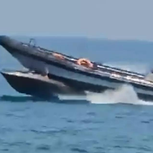 En lugar de simplemente detenerse o seguir otros métodos de control, la patrullera se lanzó sobre la nave inflable, volteándola y enviando a los migrantes al agua.