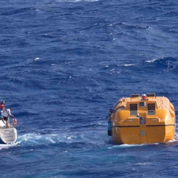 El incidente ocurrió a unas 230 millas de la isla, cuando el Serenity, un catamarán de 50 pies, sufrió una falla en una junta de escape en su escotilla, lo que causó que el agua comenzara a inundar la nave.