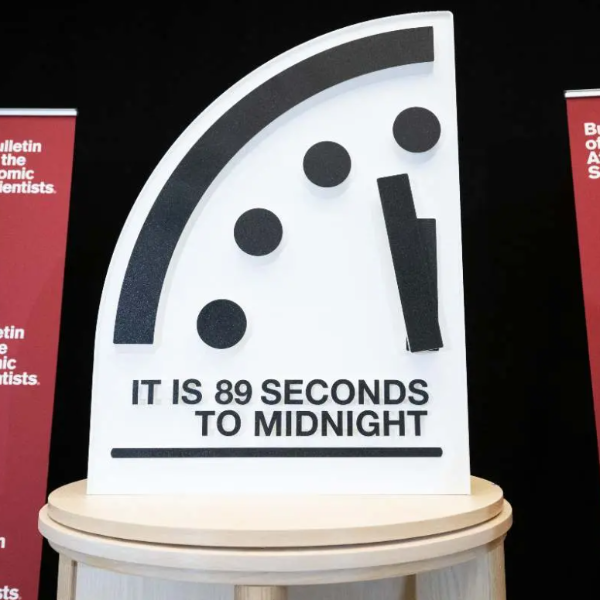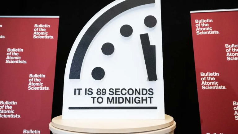 El Boletín de los Científicos Atómicos, que describe el reloj como una "metáfora de lo cerca que está la humanidad de la autoaniquilación", movió las manecillas un segundo a 89 segundos para la medianoche.