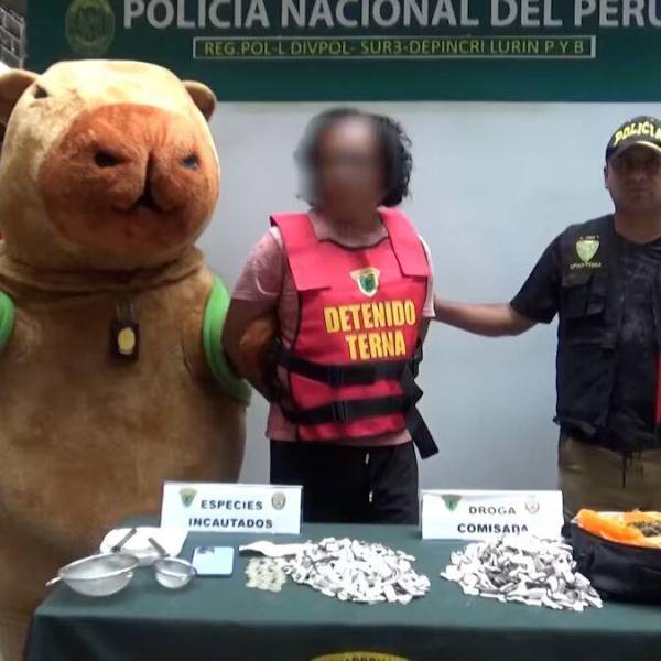 Vistiendo un disfraz de capibara, un agente de la Policía de Perú convenció a un sujeto de salir de una vivienda en la que se presumía que drogas eran almacenadas, situada en la localidad de Lurín, al sur de la ciudad de Lima.