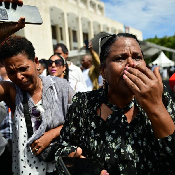 La vecina población de Haina organizó un funeral colectivo de una veintena de personas en una cancha de baloncesto. Los familiares se paraban al lado de los ataúdes de sus seres queridos, ubicados uno al lado del otro.