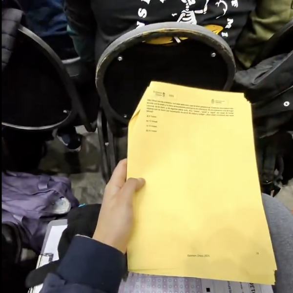 En el material se observa que el joven pasaba las hojas de la prueba frente a él con un curioso detenimiento. “Este video con todo el examen seguro es el que recorría los grupos de telegram e iban pasándose las respuestas”, aseguró el usuario de la red social X que viralizó el clip.