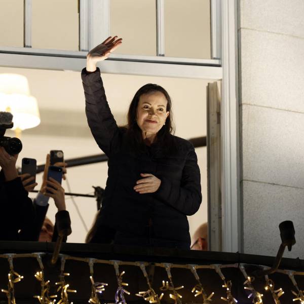 La líder opositora venezolana María Corina Machado salió este jueves al balcón del Grand Hotel de Oslo tras llegar a la capital noruega para recibir el Premio Nobel de la Paz, saludó a sus seguidores ya de madrugada visiblemente cansada pero sonriente y cantó el himno de su país con la mano en el pecho.