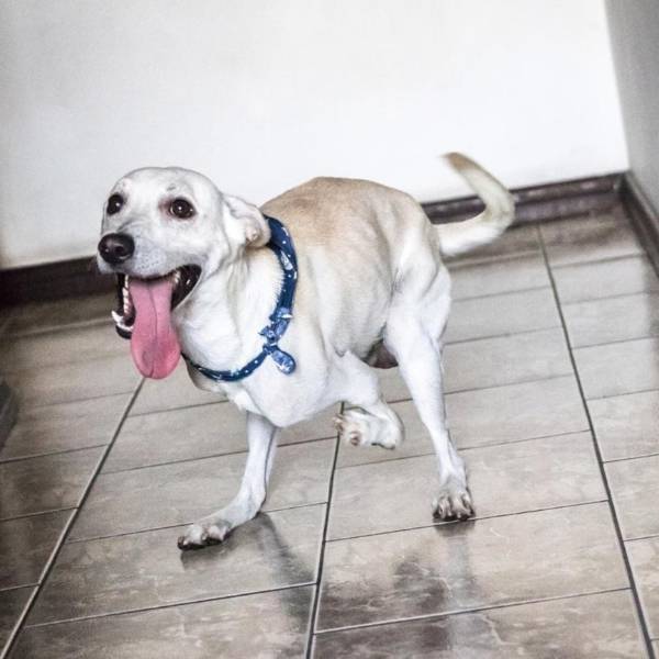 Por su discapacidad, el perro arrastra mucho el cuello al moverse. Por eso desde la entidad advirtieron que la casa adoptante debe tener un piso liso, sin grava o ranuras para no lastimar el cuello del animal.