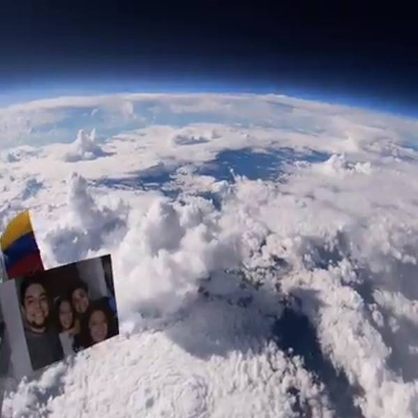 Aproximadamente a 30 km de altitud la cámara captaba no solo la perfecta curvatura del planeta Tierra sino “lo profundo del negro espacio, el cual estaba a 70km por encima de la sonda”, el punto de luz que representaba el sol a la distancia, y la pequeña foto de Faber y su familia que acompañó toda la expedición junto con una aún más pequeña bandera de Colombia.