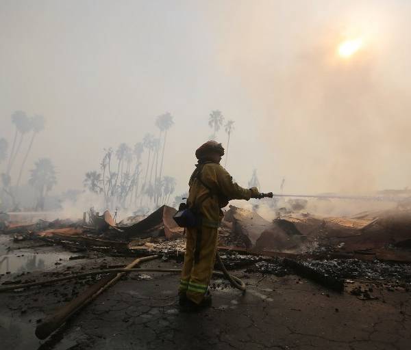 El departamento de bomberos de Ventura, un condado al norte de Los Ángeles, informó que más de 27.000 personas abandonaron sus hogares para huir del incendio, que ya devastó más de 18.200 hectáreas en la zona.