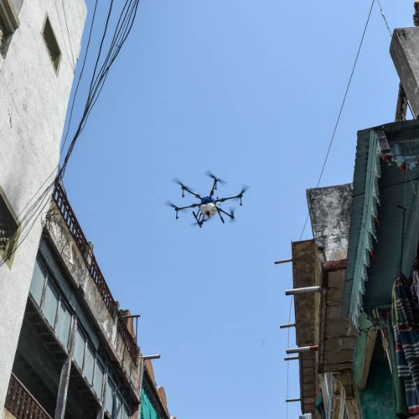 Las autoridades de la ciudad india de Ahmedabad (oeste) utilizaron drones y camiones de bomberos para desinfectar las calles este sábado, ante el aumento de casos de contagio.