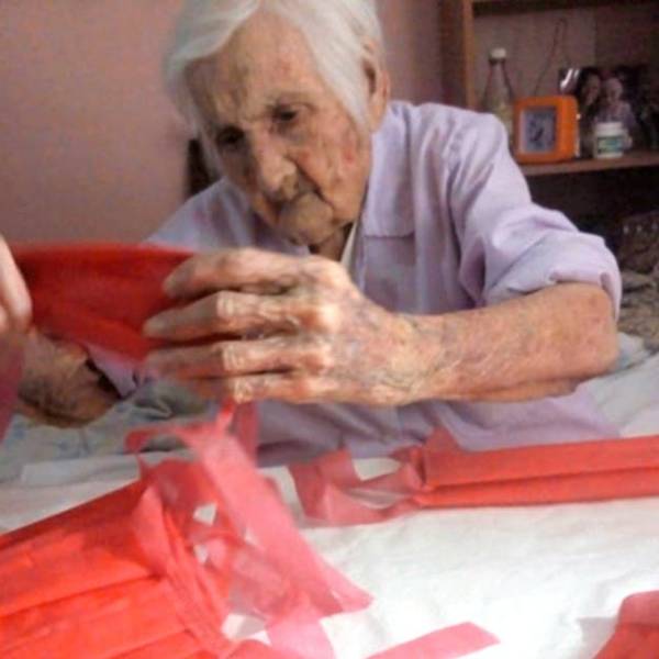 A pesar de sufrir cataratas que complican su vista, Telma mantiene la misma agilidad en los dedos que cuando tejía en su juventud. Y también, según su hija postiza, las mismas energías: "Ella me vio tejiendo hace poco y se ofreció a ayudarme. Somos un grupo de vecinas las que los hacemos y después se los damos al hospital de nuestra zona. Apenas un granito de arena comparado con lo que hacen otros", cuenta Grimaldi.