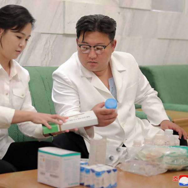 La foto que acompaña a la noticia de KCNA muestra a Kim Jong-un y la primera dama norcoreana, Ri Sol-ju, revisando los medicamentos enviados a la zona afectada, que incluye la ciudad de Haeju, capital de la provincia de Hwanghae del Sur, y el condado colindante de Kangryong, ambos en la frontera marítima occidental con Corea del Sur.