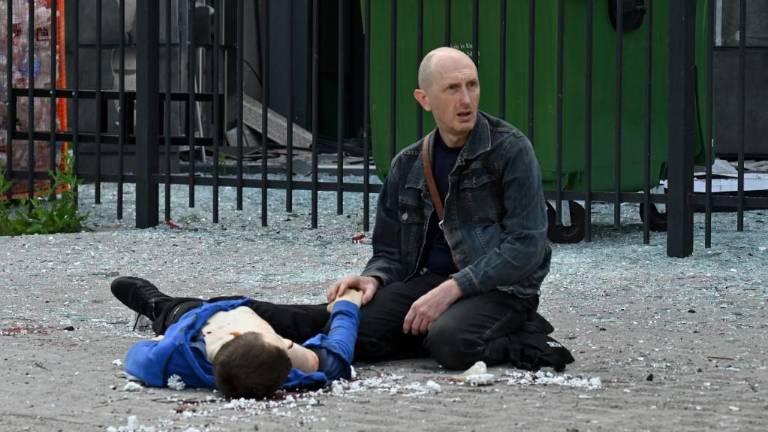 Un padre y su hijo muerto protagonizaron desgarradoras imágenes capturadas tras un ataque ruso en una parada de autobús de la ciudad ucraniana, Járkov.