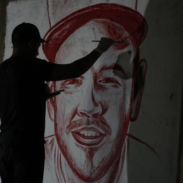 Con la sangre que cinco jóvenes han donado diluida en un pigmento que le ayuda a no oxidarse y a permanecer en la pared, dibujaron la cara del popular René Pérez, cuyas letras son coreadas en protestas, y también una paloma de la paz en un antiguo depósito de agua, que nunca funcionó porque estaba mal construido y que acabó convertido en basurero.