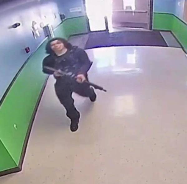 El video obtenido por el periódico Austin American-Statesman muestra a Salvador Ramos, de 18 años, armado estrellando su camioneta afuera de la Escuela Primaria Robb y luego entrando al edificio a las 11:33 am portando un rifle semiautomático.
