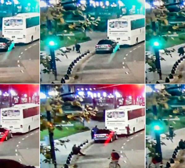 Segundos después y con el automóvil aún allí, llega una agente de policía a socorrer a Yadón. Mientras la oficial socorre a la víctima, a escasos diez metros, el vehículo de los atacantes se pone en marcha y se aleja lentamente.