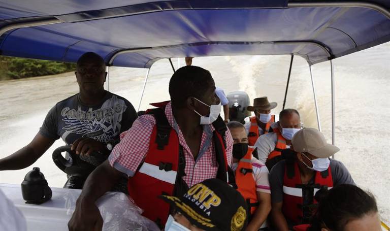 "Hemos podido constatar que se encuentran represados cerca de 19.000 migrantes en este municipio (Necoclí), con destino a Acandí (Chocó), para su tránsito a la frontera con Panamá", aseguró Carlos Camargo, el jefe de la entidad que vela por los Derechos Humanos en Colombia.