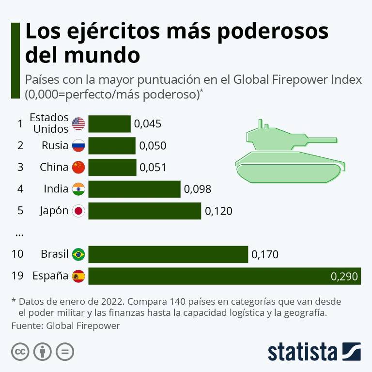 Sin embargo, la ofensiva sobre Ucrania de Rusia, segunda potencia militar mundial, confronta a dos países cuyo potencial militar no admite comparación ni en número de efectivos ni en cantidad y calidad de armamento y equipos bélicos.