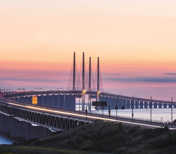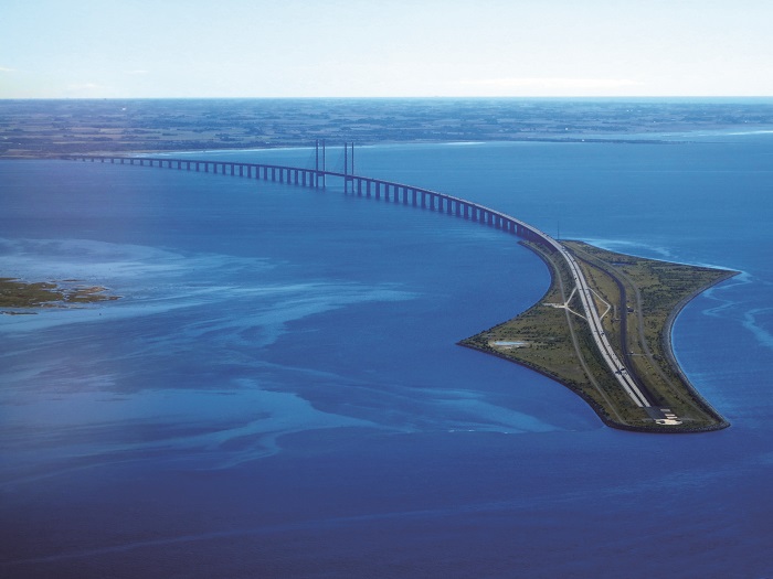 El puente es la realización de un sueño antiguo de las comunidades de Copenhague en Dinamarca y Malmö en Suecia. “El mar no solo representó por siglos una barrera física, sino también psicológica para los habitantes de estas dos ciudades, disuadiendo el comercio y las relaciones más cercanas por las dificultades del viaje marítimo”. Finalmente en 1991, los dos gobiernos firmaron un acuerdo y encargaron a un consorcio privado, con capital de los dos países, la construcción y operación. La construcción se inició en 1993 y la operación comenzó en diciembre de 2000. Los habitantes pagan un peaje al operador, cuya concesión vence en 2037. El viaje en auto toma 10 minutos y en tren 35. La obra ha beneficiado a más de 3.700.000 habitantes. Su costo de construcción fue de 1.500 millones de dólares.