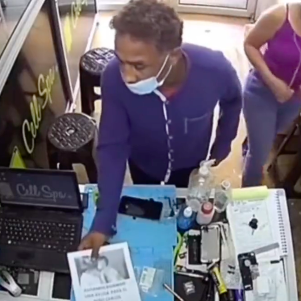 El individuo entró a un centro estético pidiendo ayuda para un familiar que supuestamente se encuentra enfermo, pero terminó llevándose un celular del mostrador en menos de un minuto.
