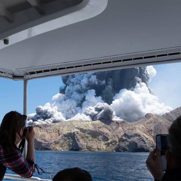 White Island se encuentra a unos 50 km de la costa de la turística bahía de Plenty en la isla norte de Nueva Zelanda, y los viajeros aficionados al turismo de aventuras suelen visitarla, ataviados con cascos de seguridad y mascarillas de gas, para acercarse al volcán.