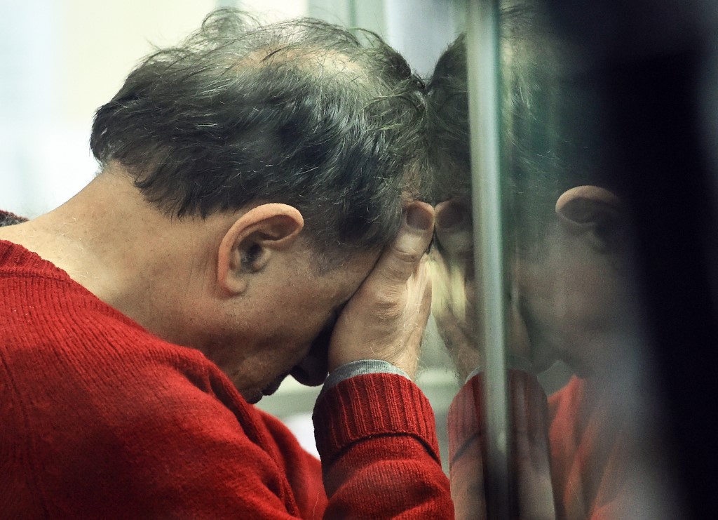 Pálido, mal afeitado, de jeans y suéter rojo, Oleg Sokolov, catedrático de historia en la Universidad Estatal de San Petersburgo y especialista de Napoléon Bonaparte, se cubrió la cara con las manos sollozando, antes de acusar a la víctima, ante el juez que decidirá si permanece detenido.