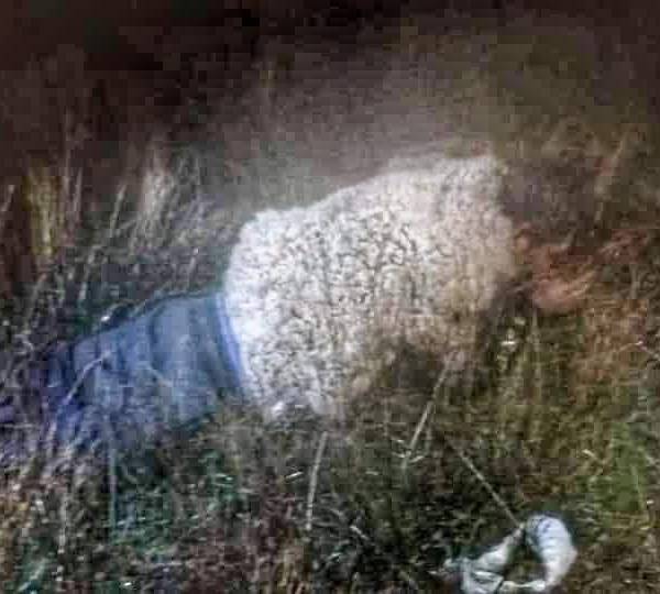 En las imágenes compartidas se observa al hombre en medio de la hierba con un cuero de oveja sobre su espalda y un pantalón oscuro.