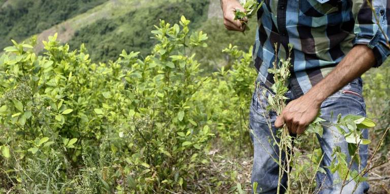 El hombre de ojos claros y barba tenue es hoy uno de los cientos de miles de campesinos que siembran la planta de la que se extrae la cocaína.