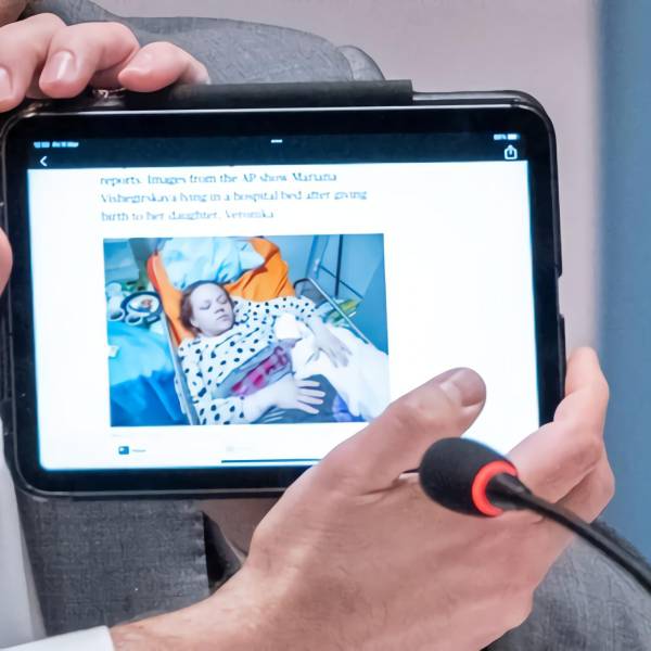 Al embajador ruso le respondió su colega ucraniano, quien mostró en su tableta las primeras fotos de la bebé recién nacida. "(Mariana) tuvo una niña muy sana anoche, se llama Veronika, aquí está con su padre", dijo ante los diplomáticos del Consejo.