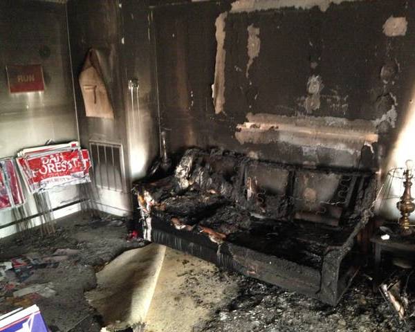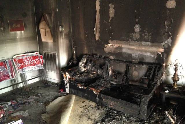 En unas fotografías colgadas en la red por la división estatal del partido podían verse las paredes y los muebles de la sede carbonizados, así como los coloridos carteles de los candidatos, entre ellos el de Donald Trump, quemados y arrugados.