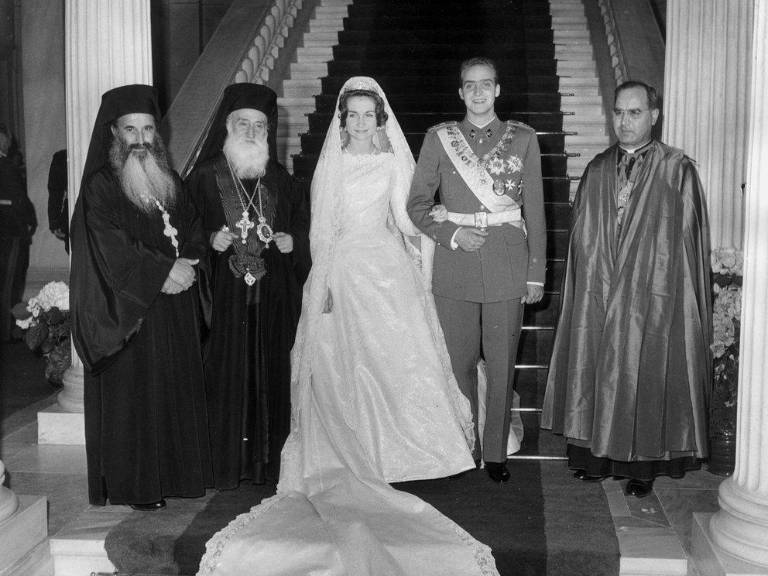 La primera fue de corte católico, en la catedral de San Dionisio. Ambos dijeron el “ne, thelo” (“sí, quiero”) ante el arzobispo Benedicto Printesi y la ceremonia fue sencilla, como se caracteriza a las misas católicas. Luego los novios fueron al palacio real, firmaron el acta para el registro civil español y descansaron aproximadamente 15 minutos.